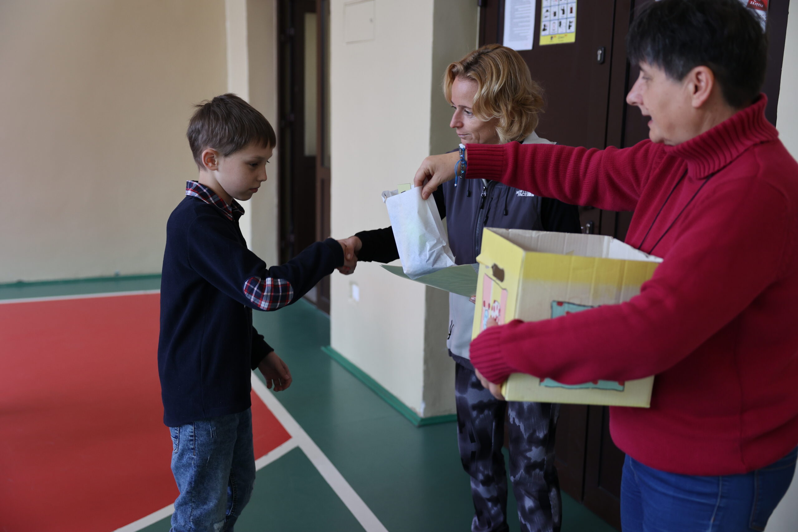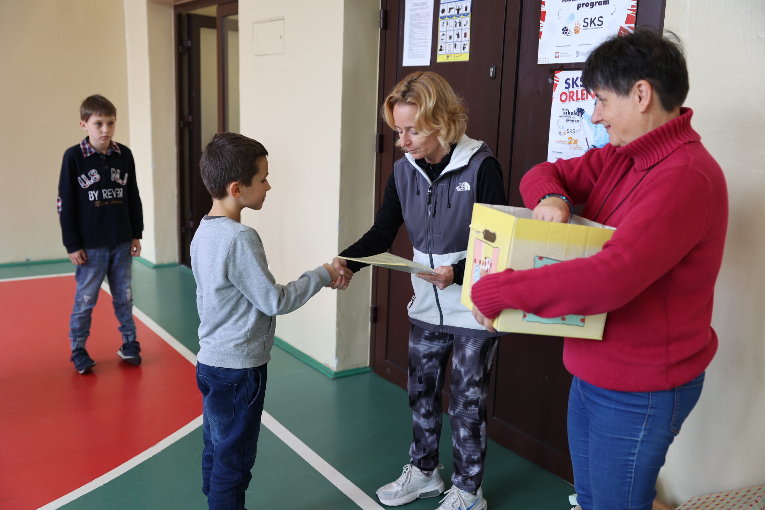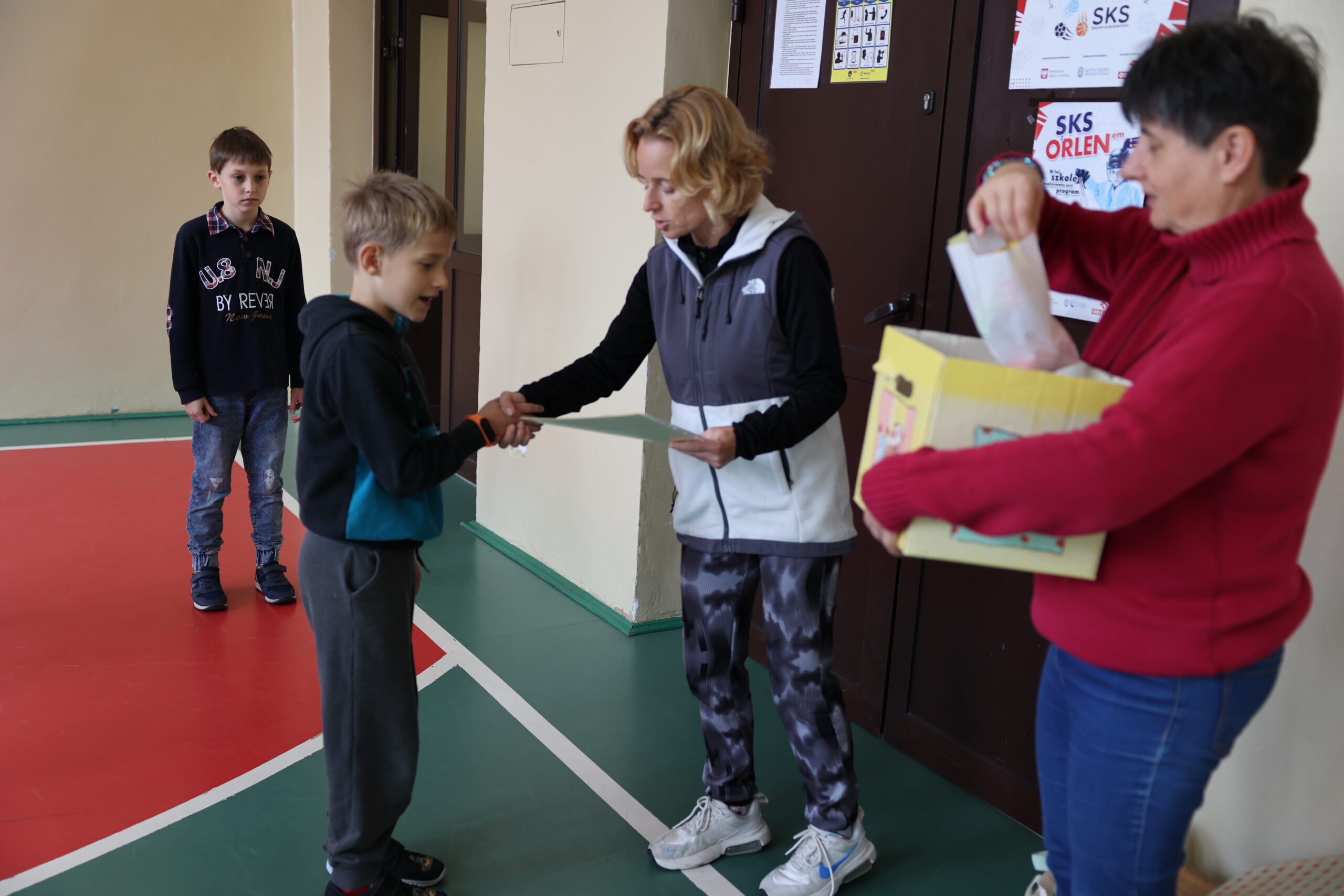 Dyplomy i nagrody rzeczowe dla I miejsca z każdego poziomu klas w kategorii dziewczynki i chłopcy.