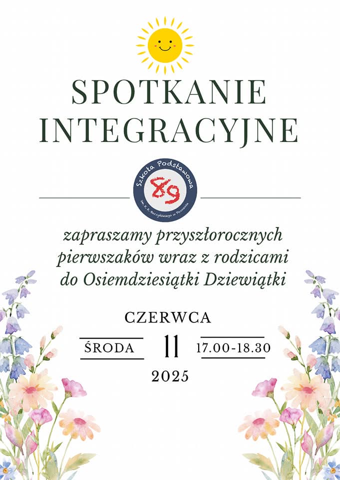 Serdecznie zapraszamy na spotkanie dla przyszłorocznych pierwszaków oraz ich rodziców, które odbędzie się 11 czerwca 2025 roku (środa) w godzinie 17:00 – 18:30.