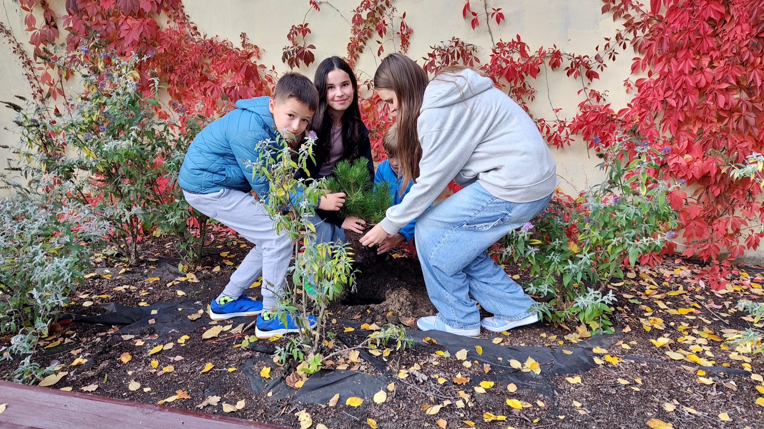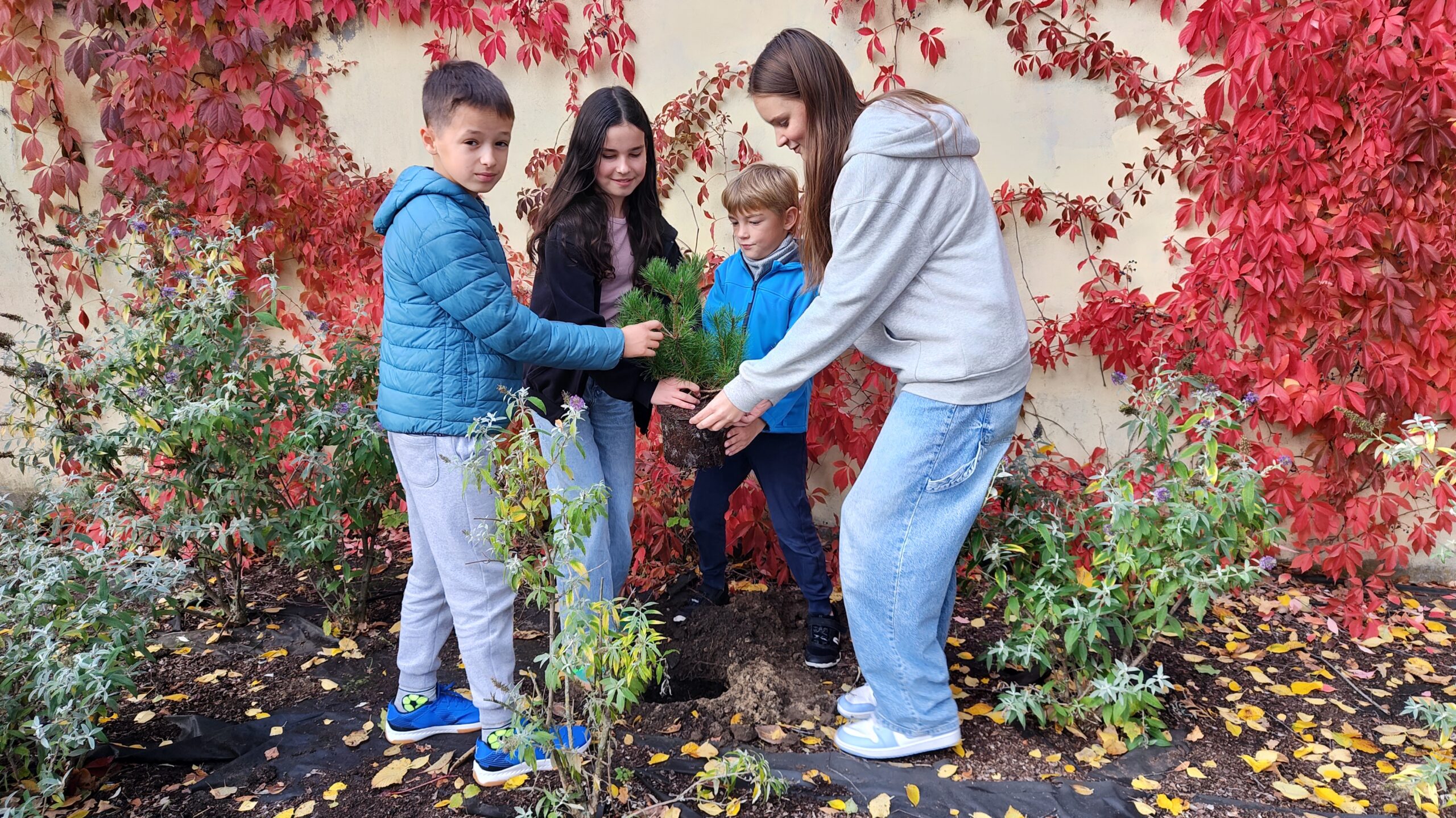 Z okazji jubileuszu 60-lecia naszej szkoły otrzymaliśmy wyjątkowy prezent od Społeczności Przedszkola nr 155 „Polanie” — młodą sosnę.