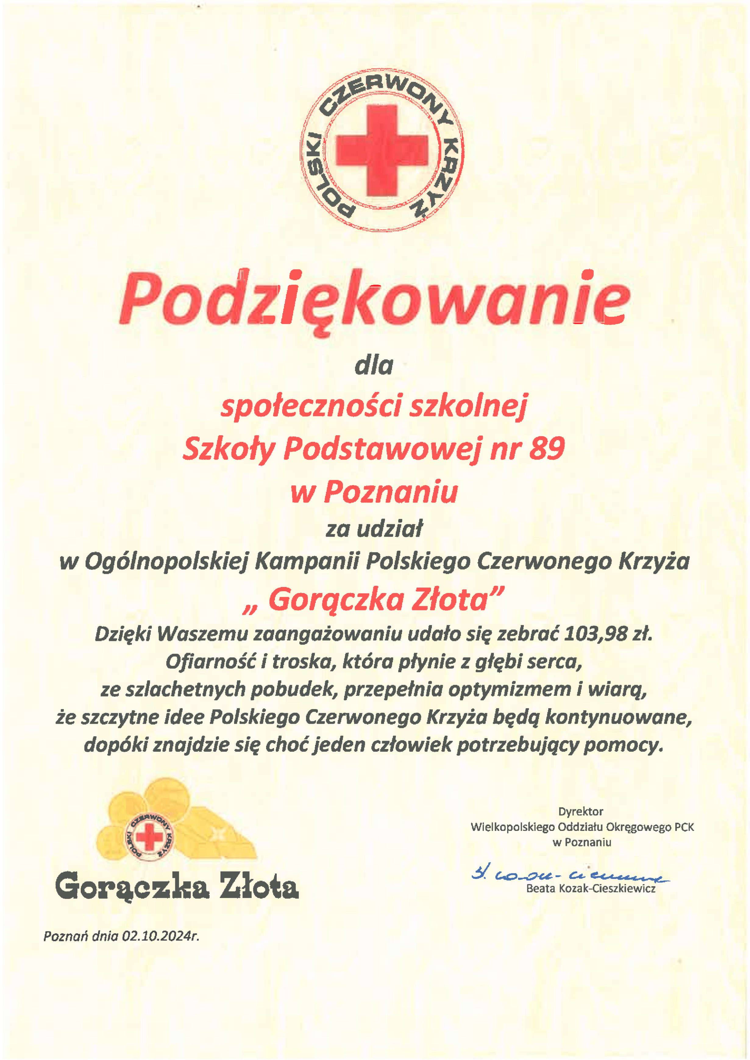 Miło nam poinformować, że uczennica klasy 6a, Zofia Szlachta, otrzymała Nagrodę Miasta Poznania za szczególne osiągnięcia artystyczne. Zosiu, gratulujemy! Jesteśmy dumni, że tak dzielnie i wytrwale rozwijasz swoje zainteresowania i talenty. Trzymamy kciuki za Twoje kolejne sukcesy.