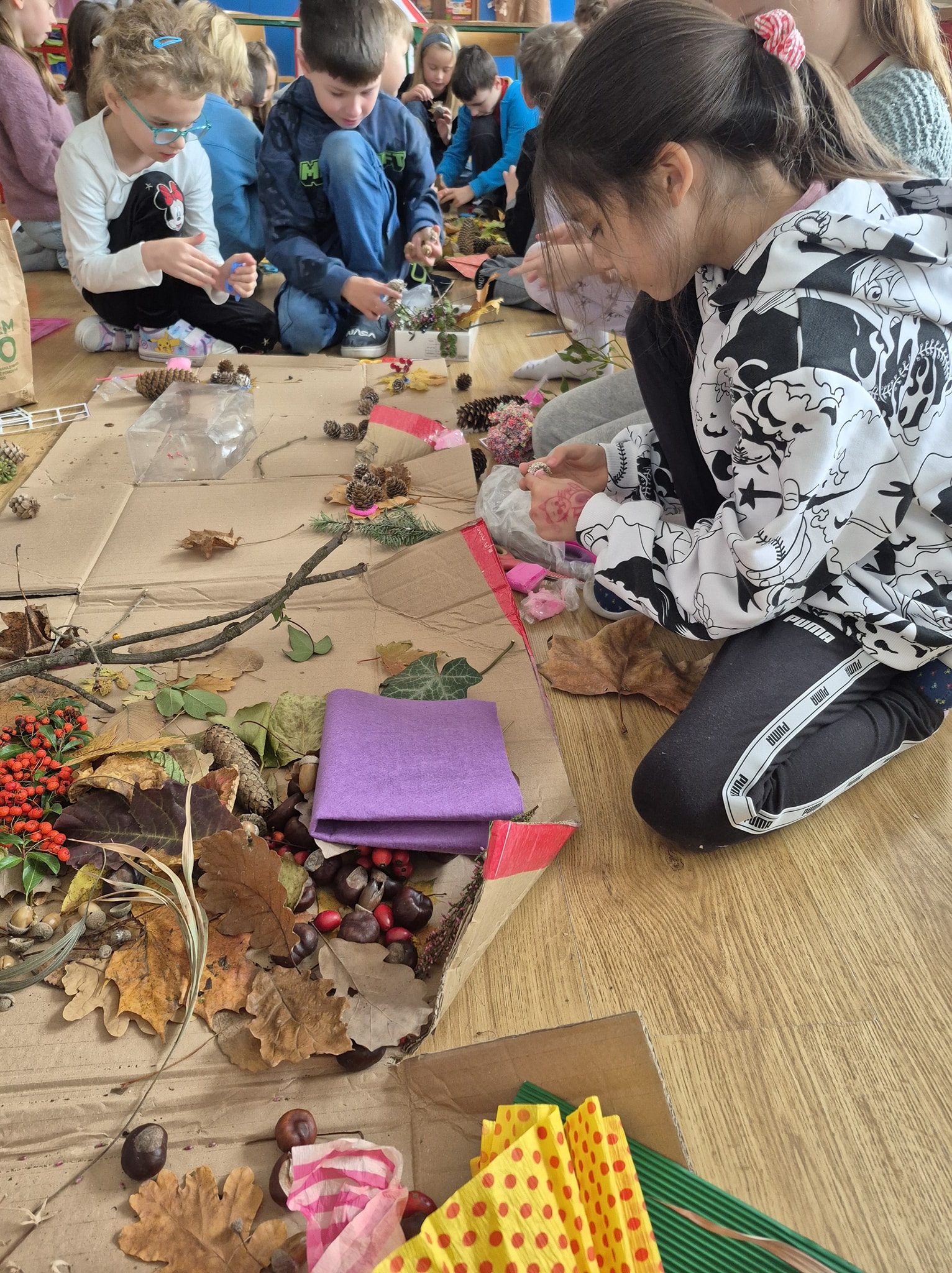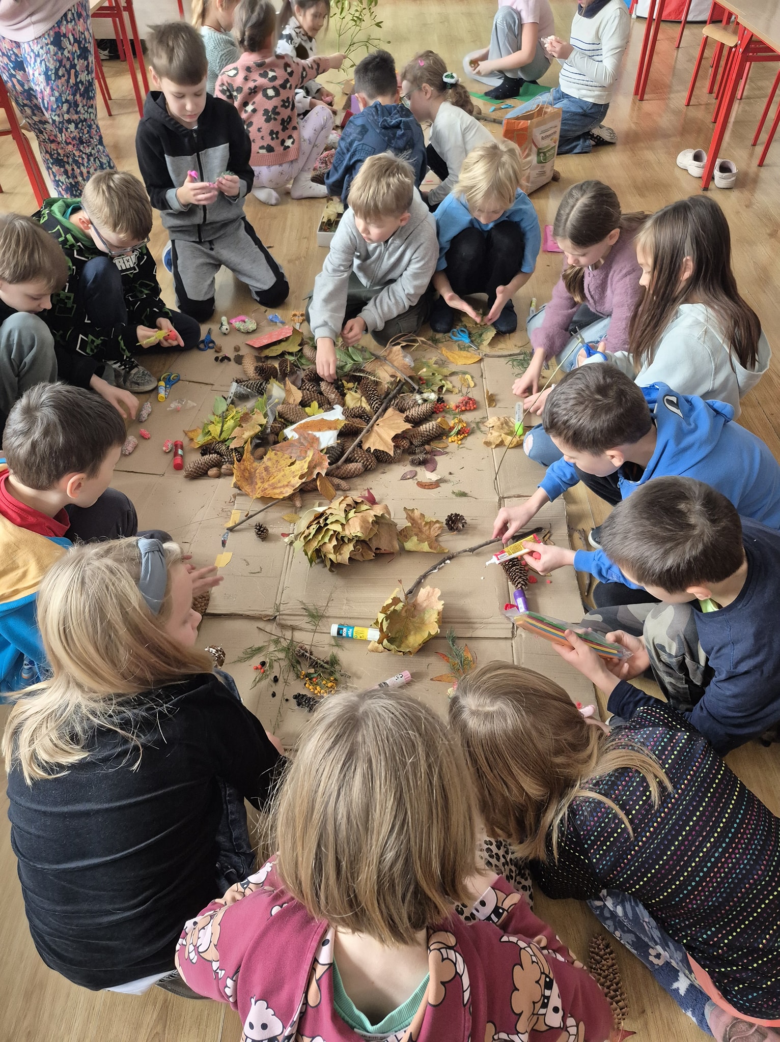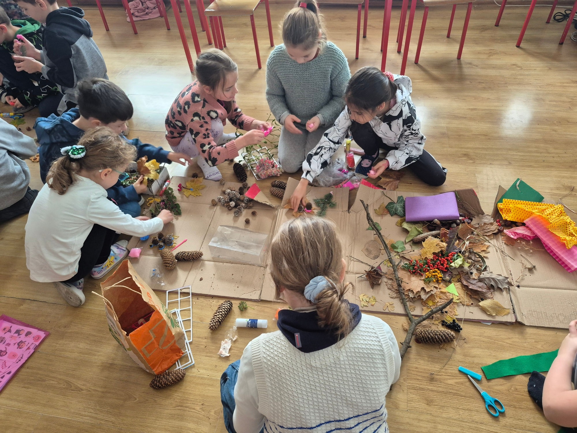 W ramach innowacji pedagogicznej „Emocje kolorem malowane – wykorzystanie elementów arteterapii podczas zajęć z edukacji plastycznej” uczniowie klasy 2a stworzyli wyjątkową jesienną makietę, korzystając z przeróżnych darów jesieni. 🍁🍂🌰