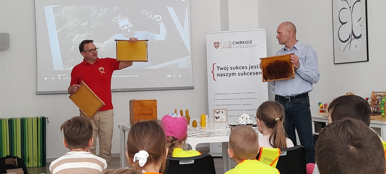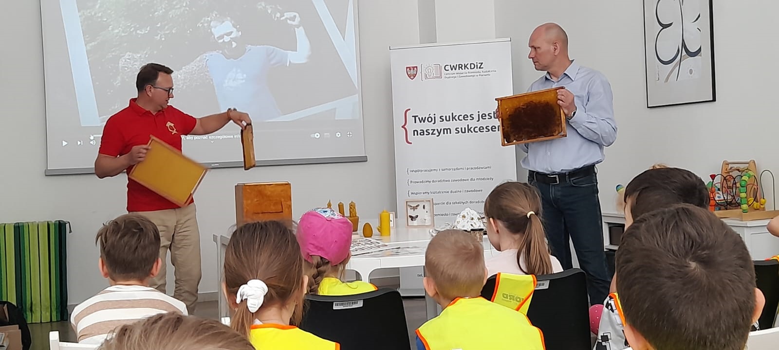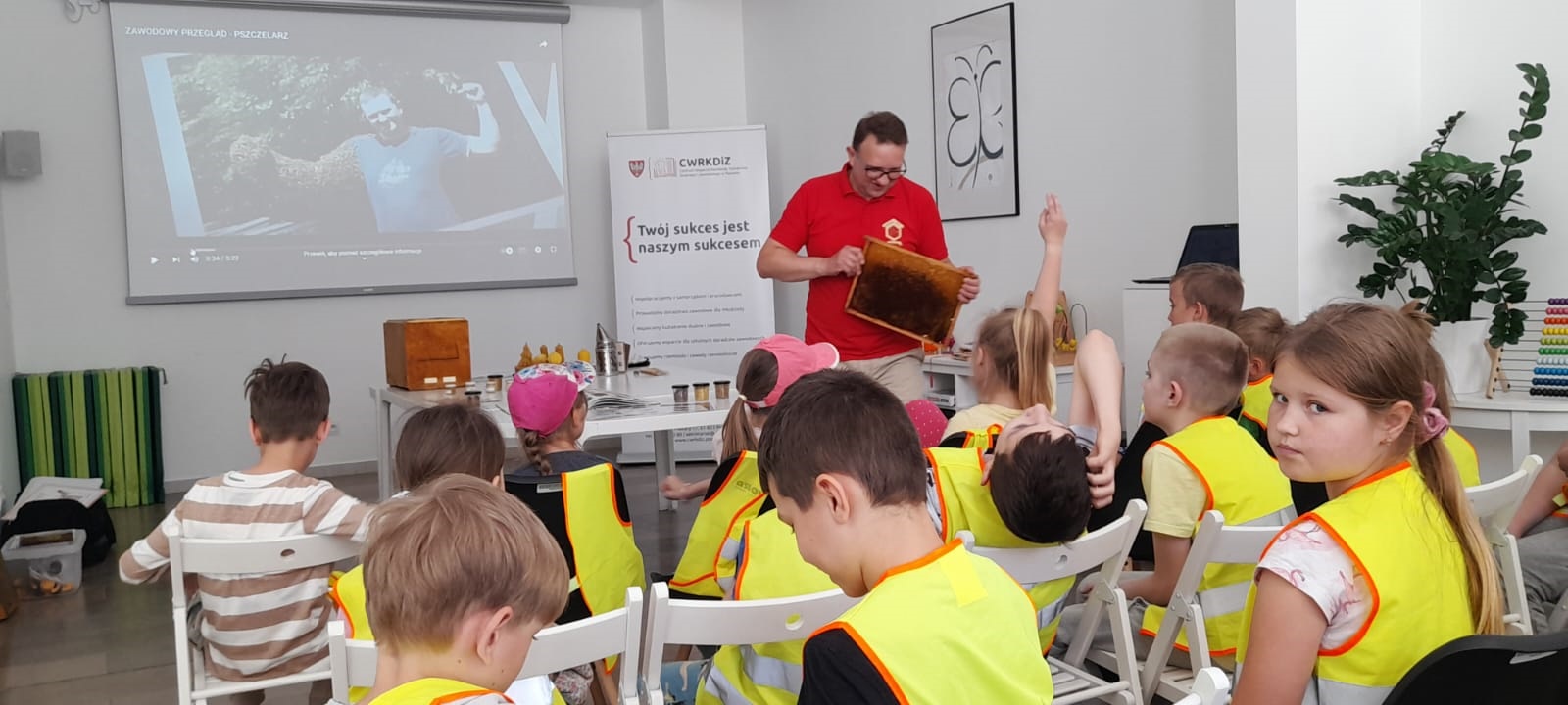 Uczniowie klasy 2b z okazji Poznańskich Dni Rodziny i Światowego Dnia Pszczół wzięli udział w warsztatach organizowanych przez Centrum Inicjatyw Rodzinnych we współpracy z Centrum Wsparcia Rzemiosła Dualnego i Zawodowego w Poznaniu. Spotkanie było bardzo ciekawe, a aktywność naszych uczniów biła rekordy pytań 🙂 Bardzo polecamy warsztaty z cyklu kreatywnych spotkań dla najmłodszych z pszczelarzem Michałem Janikiem z JanikowaBarć.
