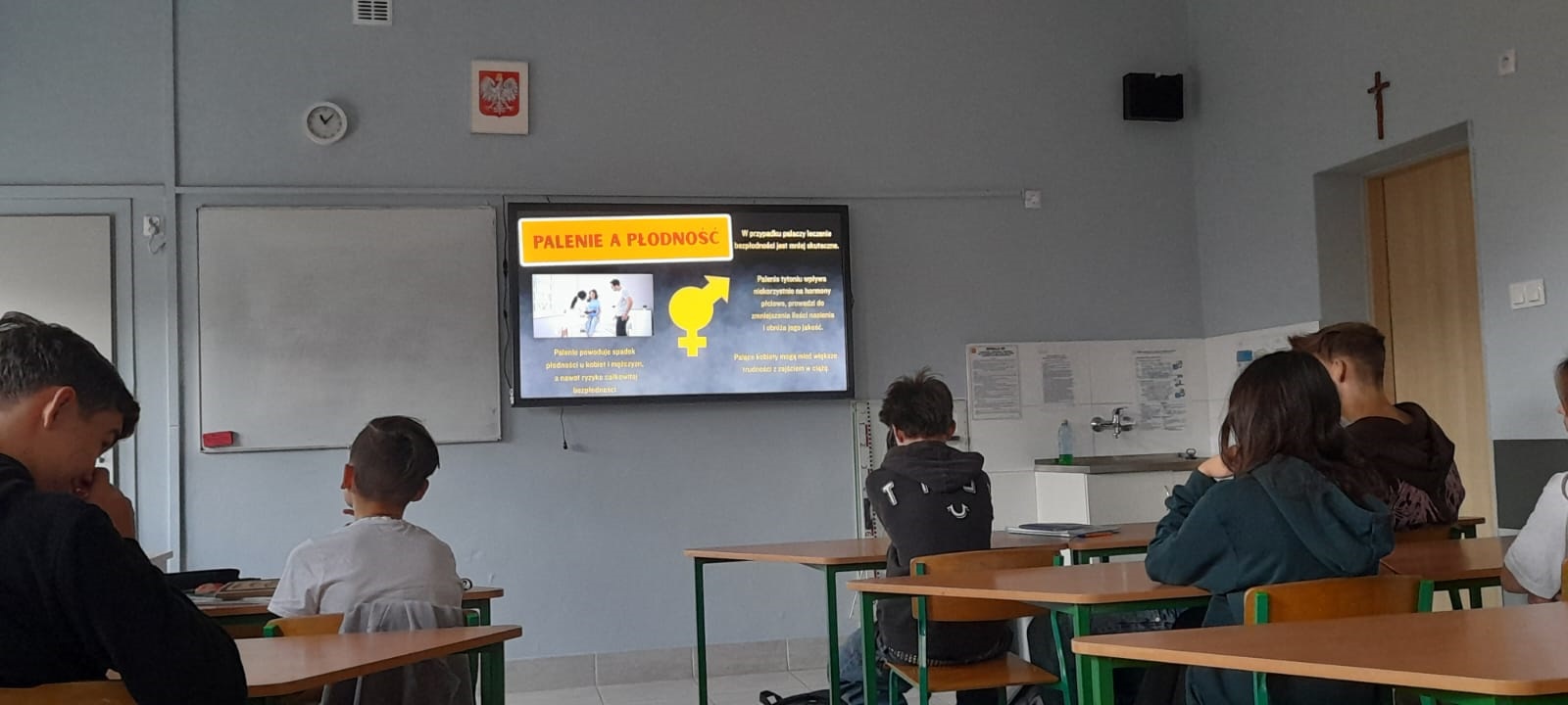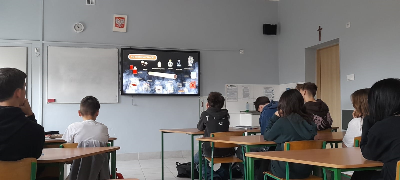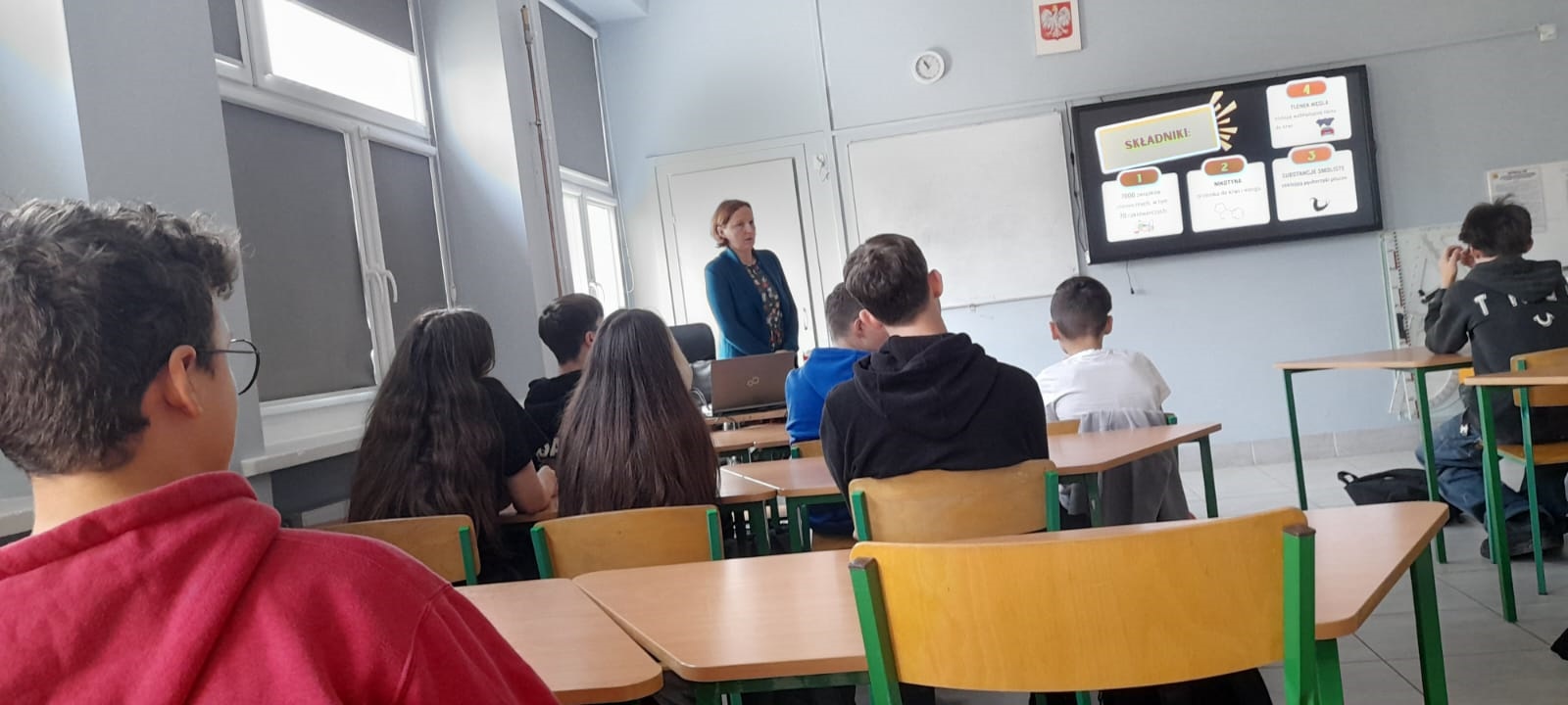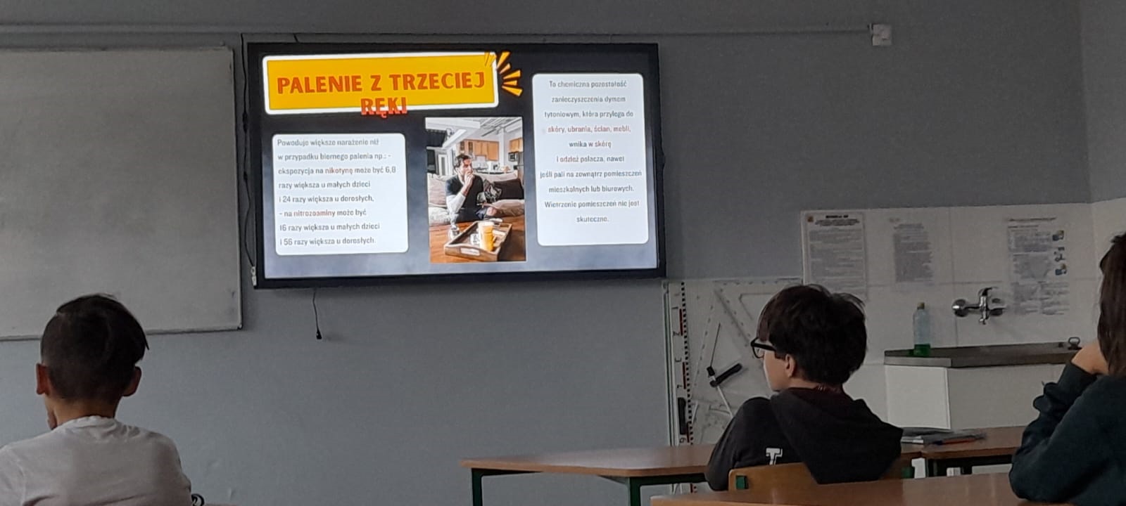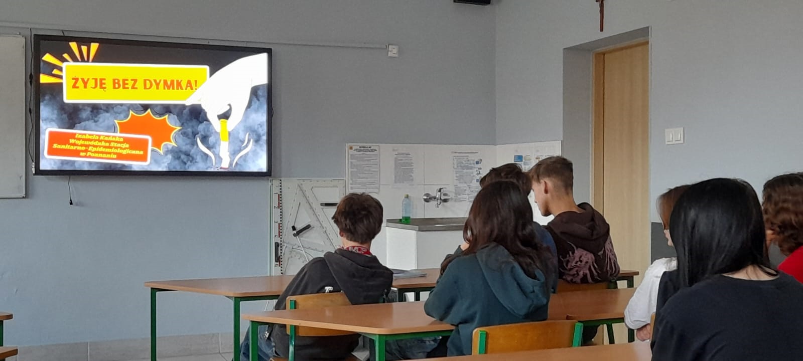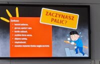 Klasa 8c uczestniczyła w warsztatach profilaktycznych pt. “Żyję bez dymka”. Warsztaty poprowadzili pracownicy Wojewódzkiej Stacji Sanitarno-Epidemiologicznej.