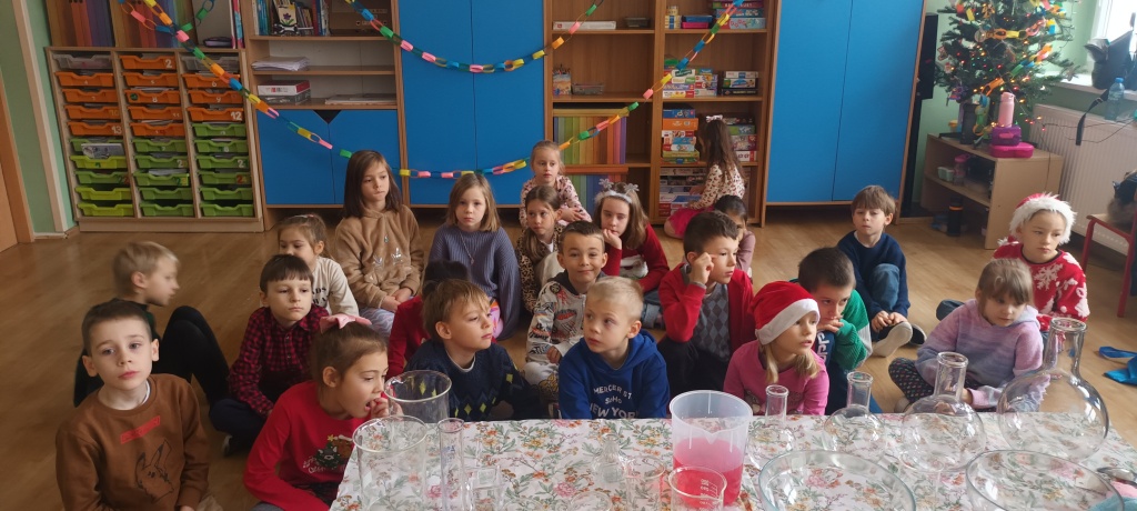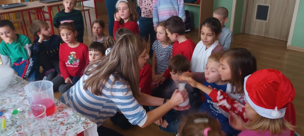 Moc atrakcji czekała na uczniów klasy 1a…w mikołajkowy poranek. Najpierw rozpakowali prezenty od mikołaja, a następnie wzięli udział w warsztatach chemicznych. Bardzo dziękujemy Pani Małgorzacie Klepacz “Przyrodnicze ABC” za przeprowadzenie fenomenalnych eksperymentów, które wprowadziły uczniów w tajniki magii, ‌nauki, kreatywności. Dzięki warsztatom mogli zrozumieć, jakie zjawiska zachodzą ‌wokół nich i jakie reakcje chemiczne mają miejsce na‍ co‍ dzień.