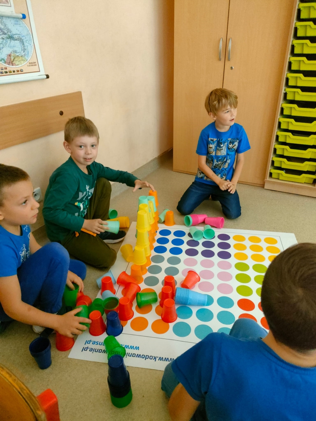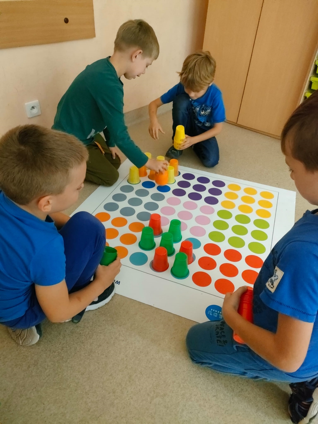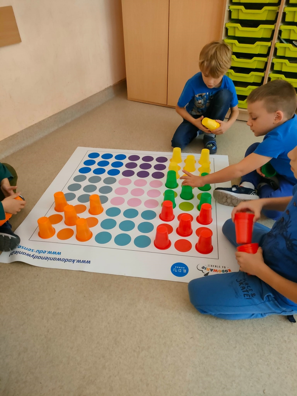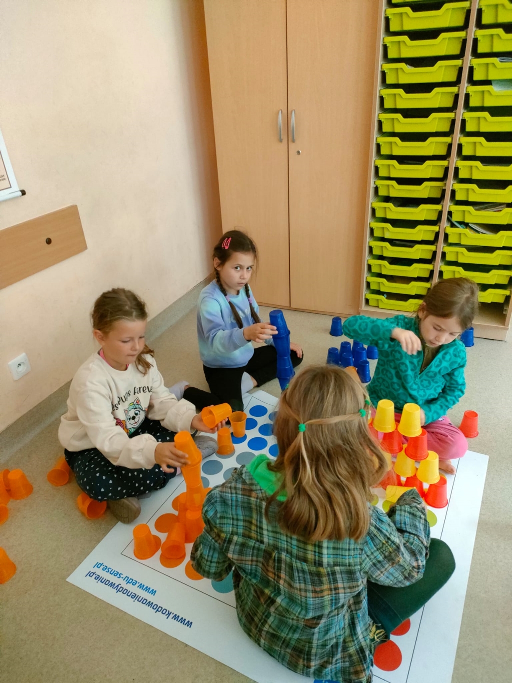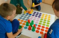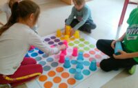 Kodowanie na dywanie 2023 Pierwsze zajęcia z kodowania na zajęciach rozwijających zainteresowania w klasach pierwszych.