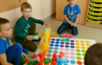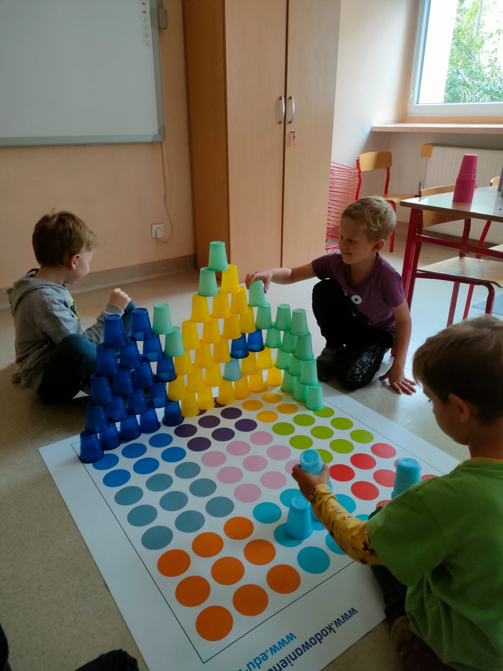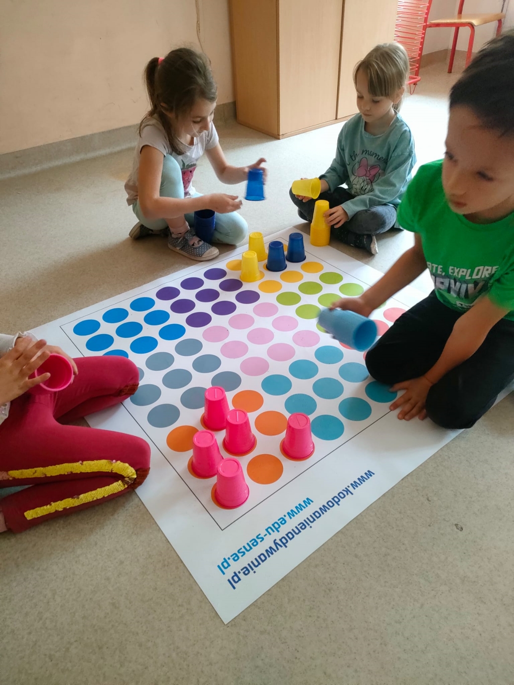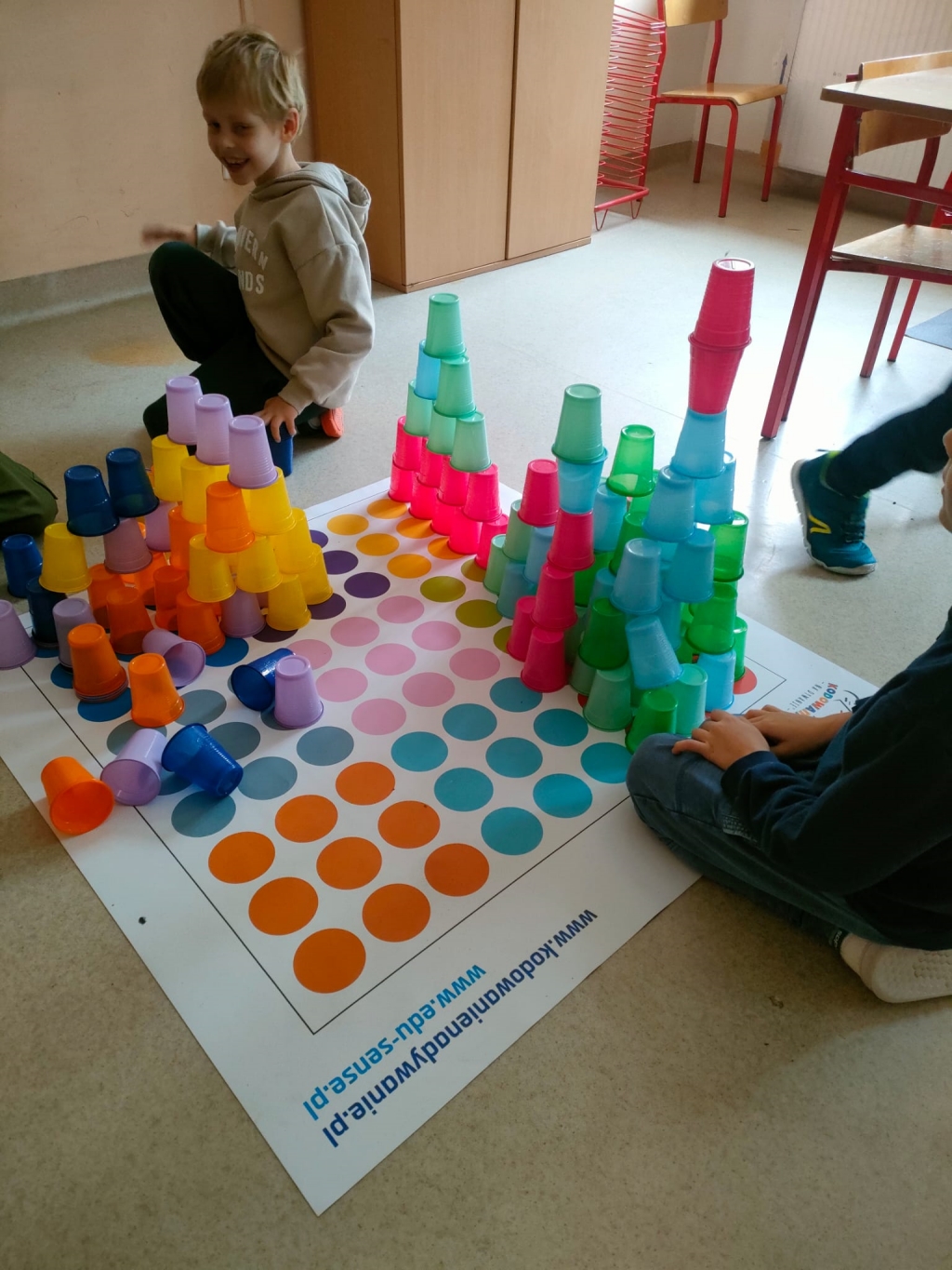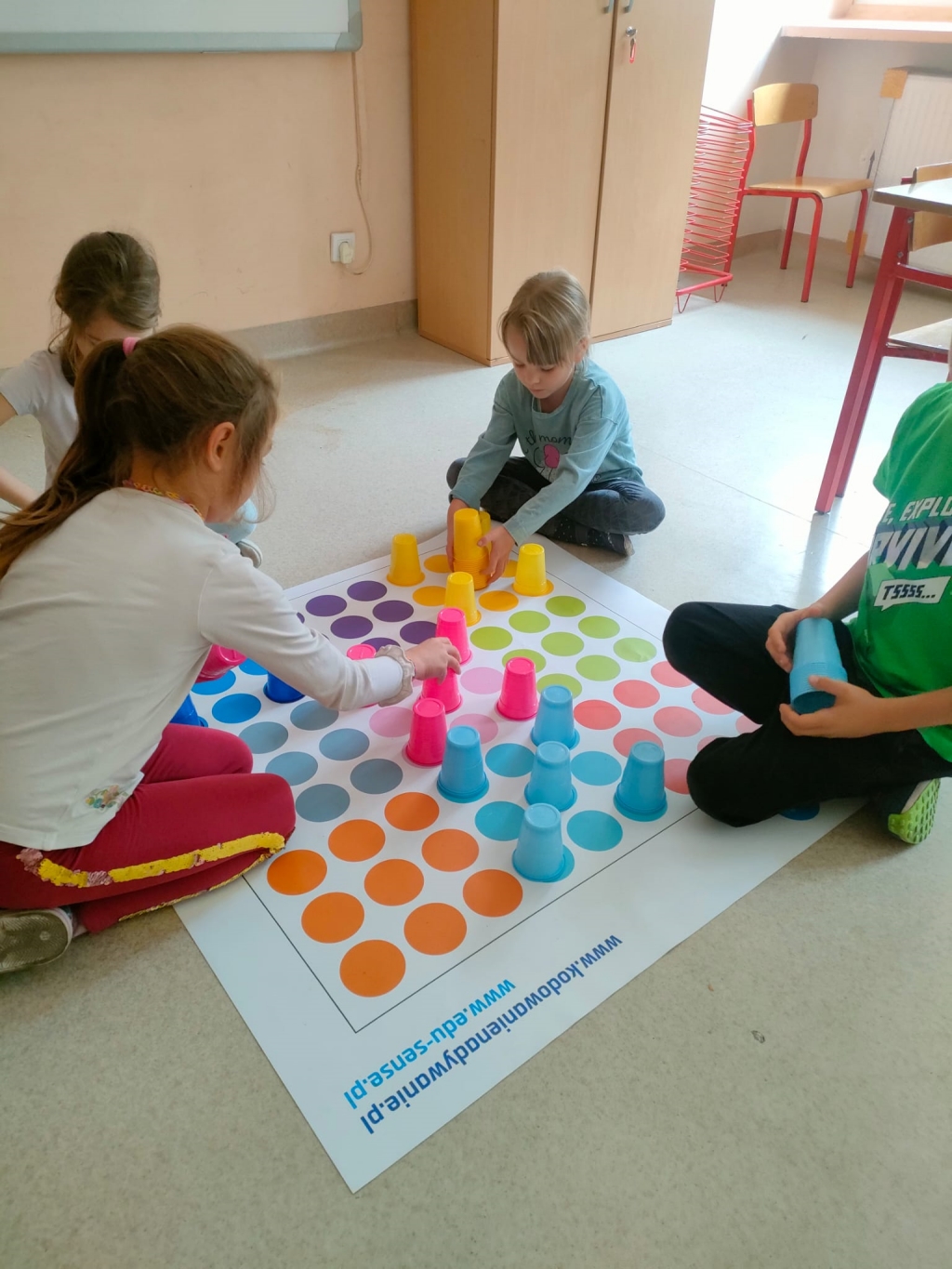 Kodowanie na dywanie 2023 Pierwsze zajęcia z kodowania na zajęciach rozwijających zainteresowania w klasach pierwszych.