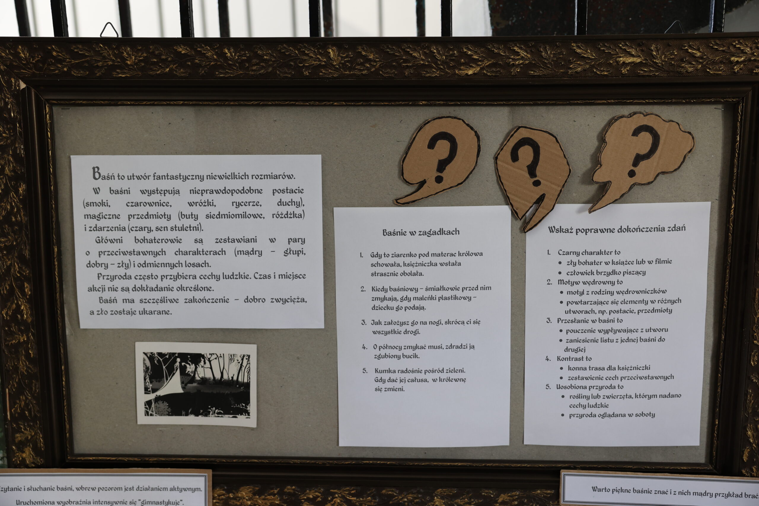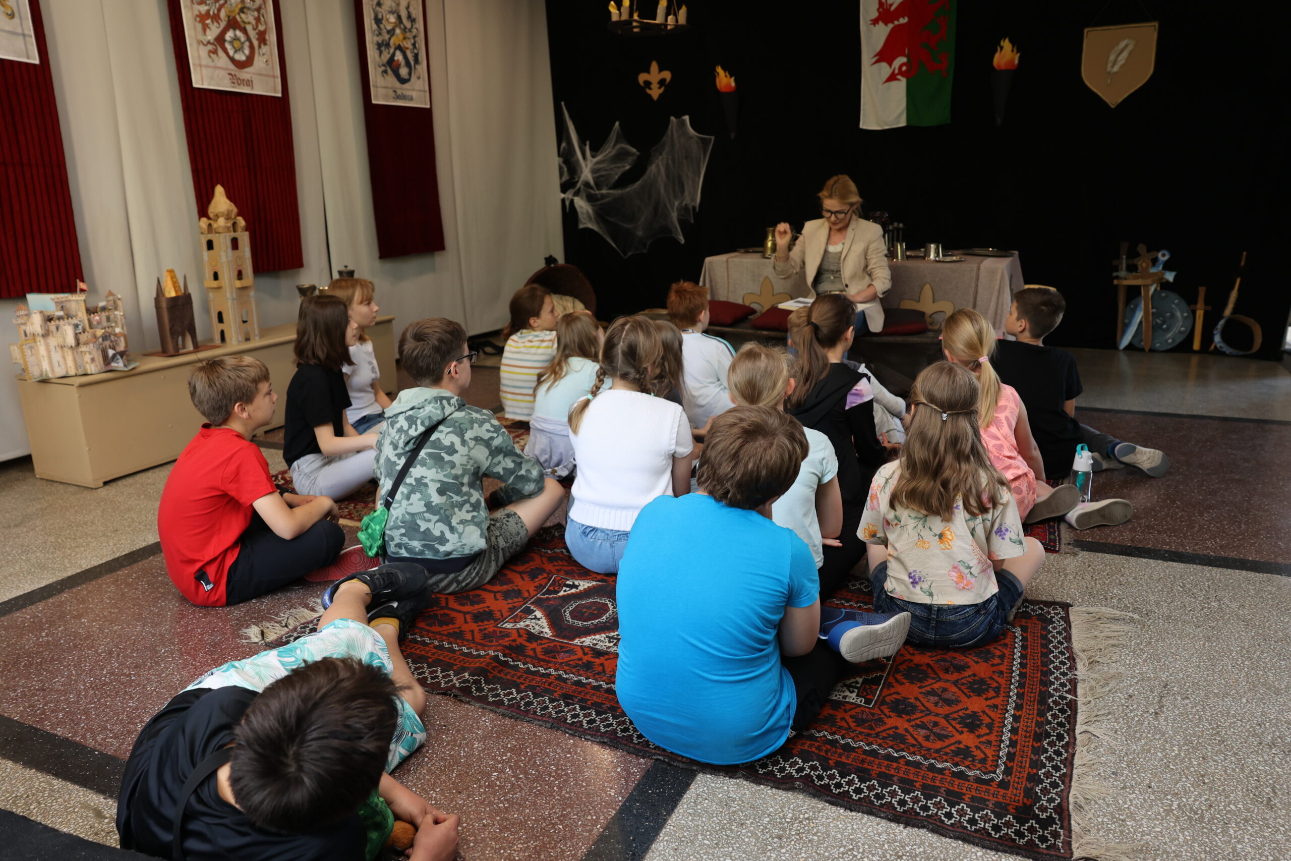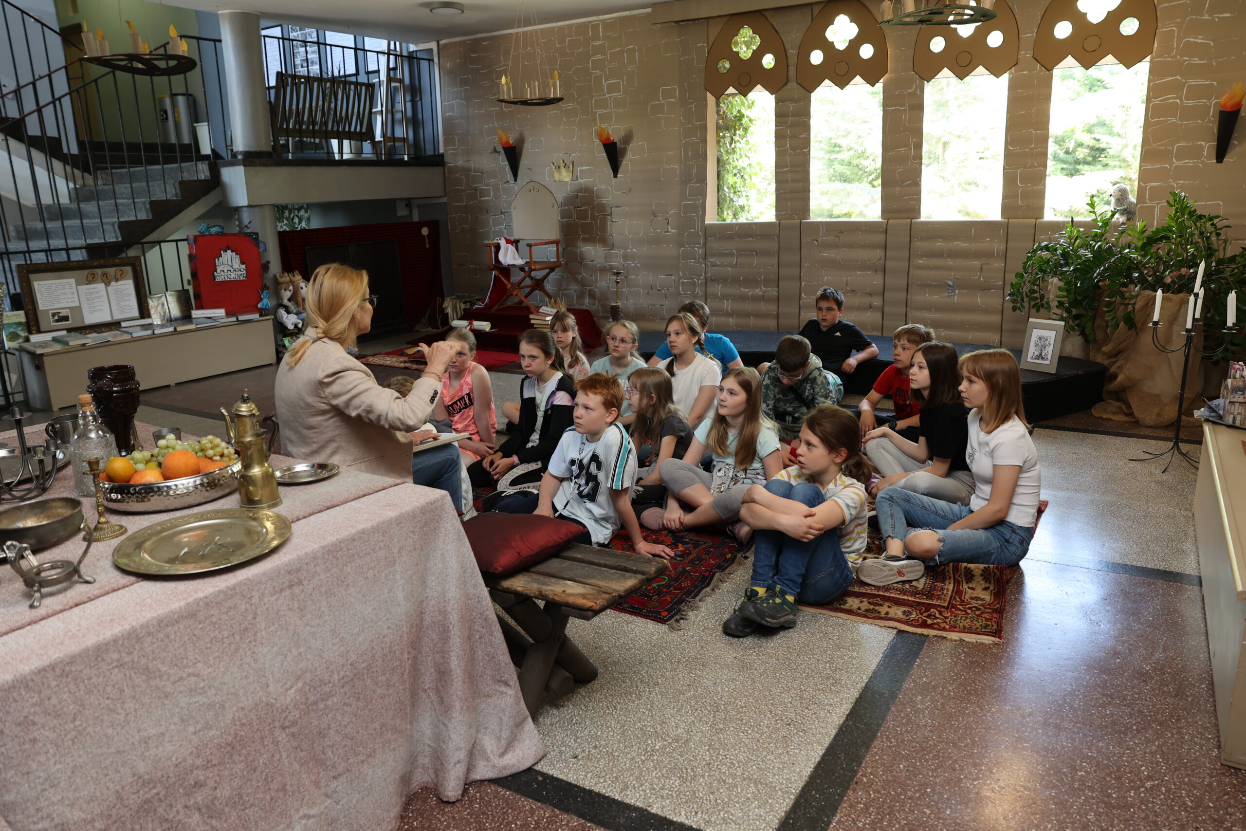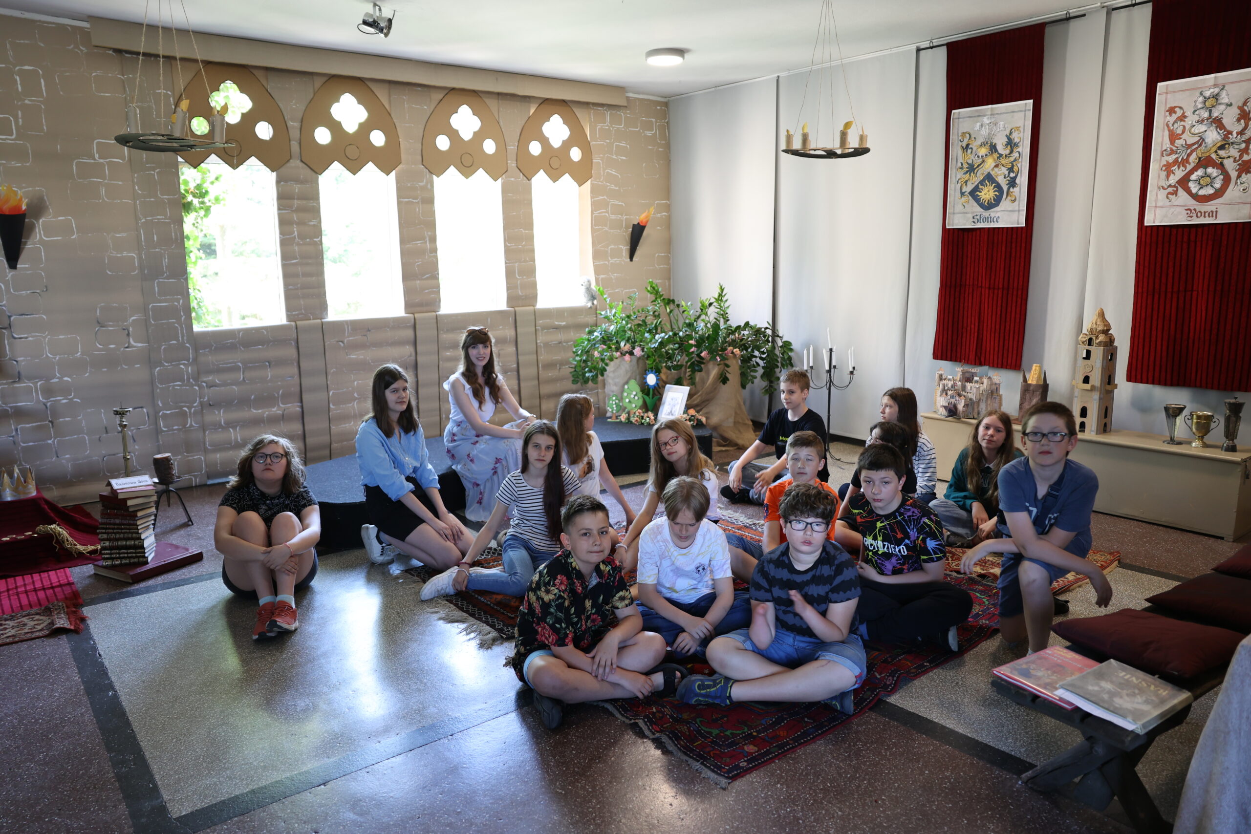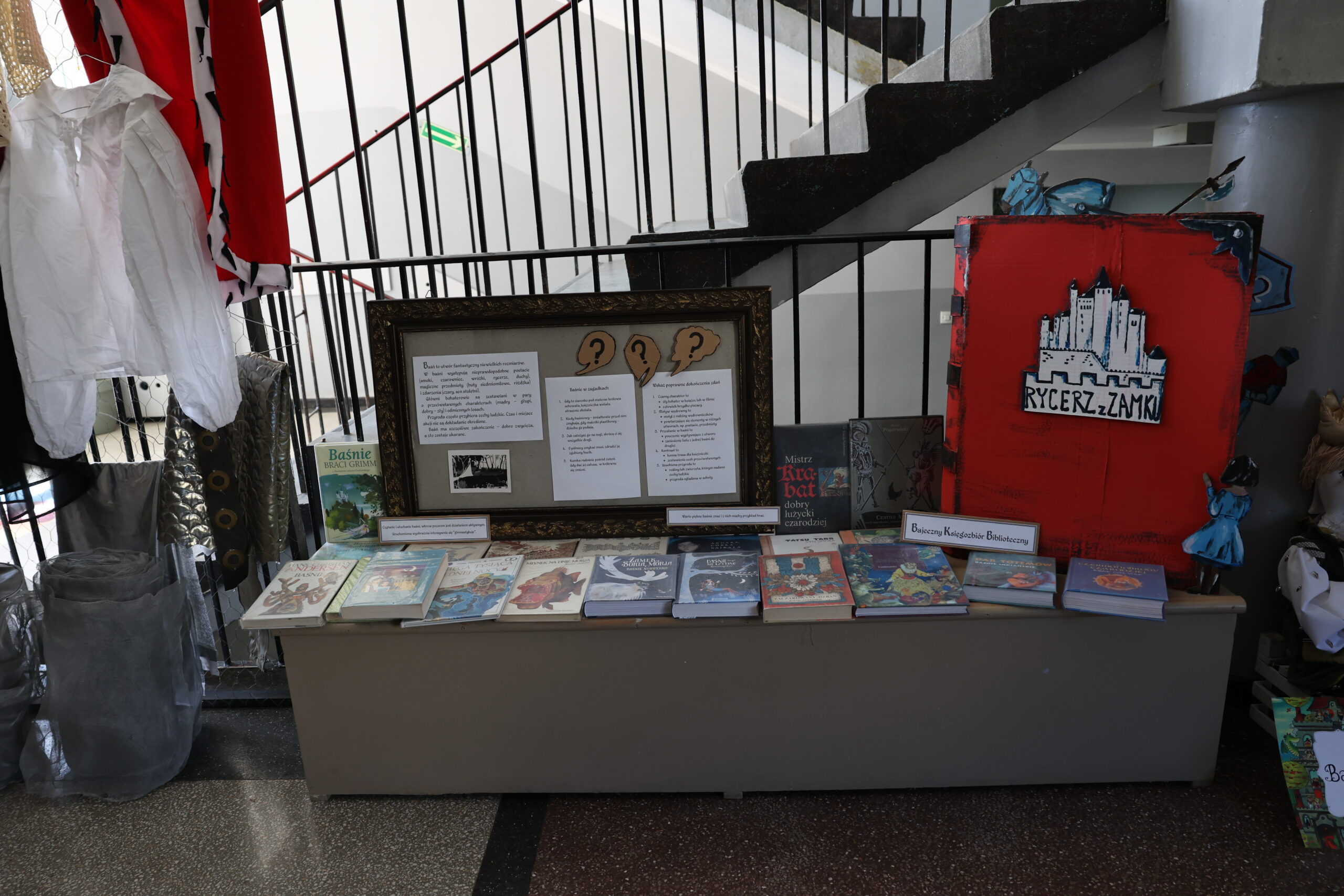 Liczymy, że uczestnicy czytelniczych spotkań, zauważą, że moc baśni, które bawią, uczą i integrują jest niewyczerpana. Aby baśniowe spotkania były doświadczeniem fascynującym i rozwijającym wyobraźnię i kreatywność, w holu szkoły stanął “zamek rycerski”. To w jego scenerii poczytamy i posłuchamy baśni z różnych stron świata, a już wkrótce uczniowie klas 1a i 1b będą uczestniczyć w finale projektu edukacyjno-czytelniczego “Baśniowe czytanie na dywanie”.