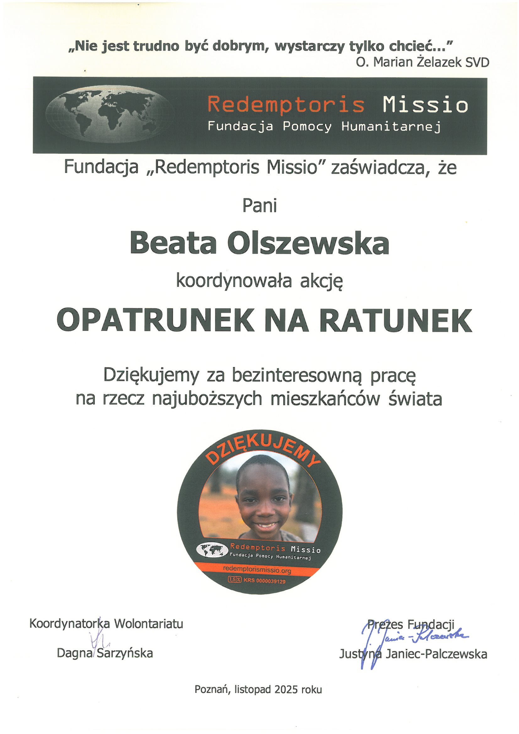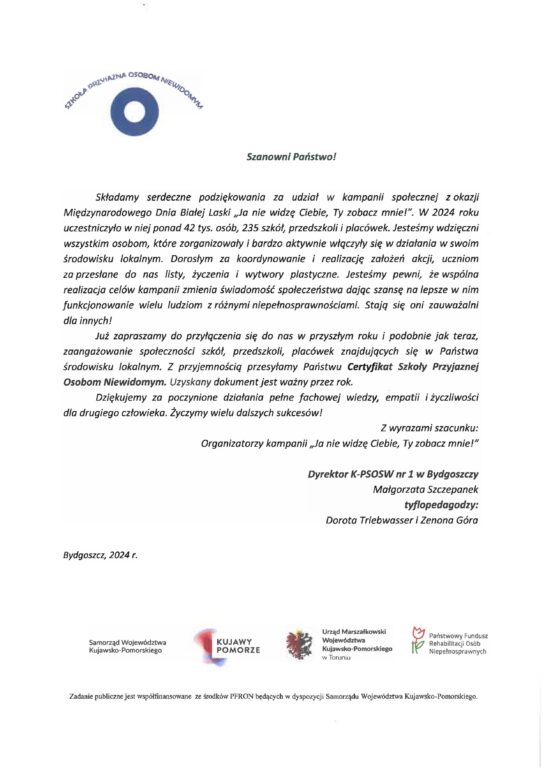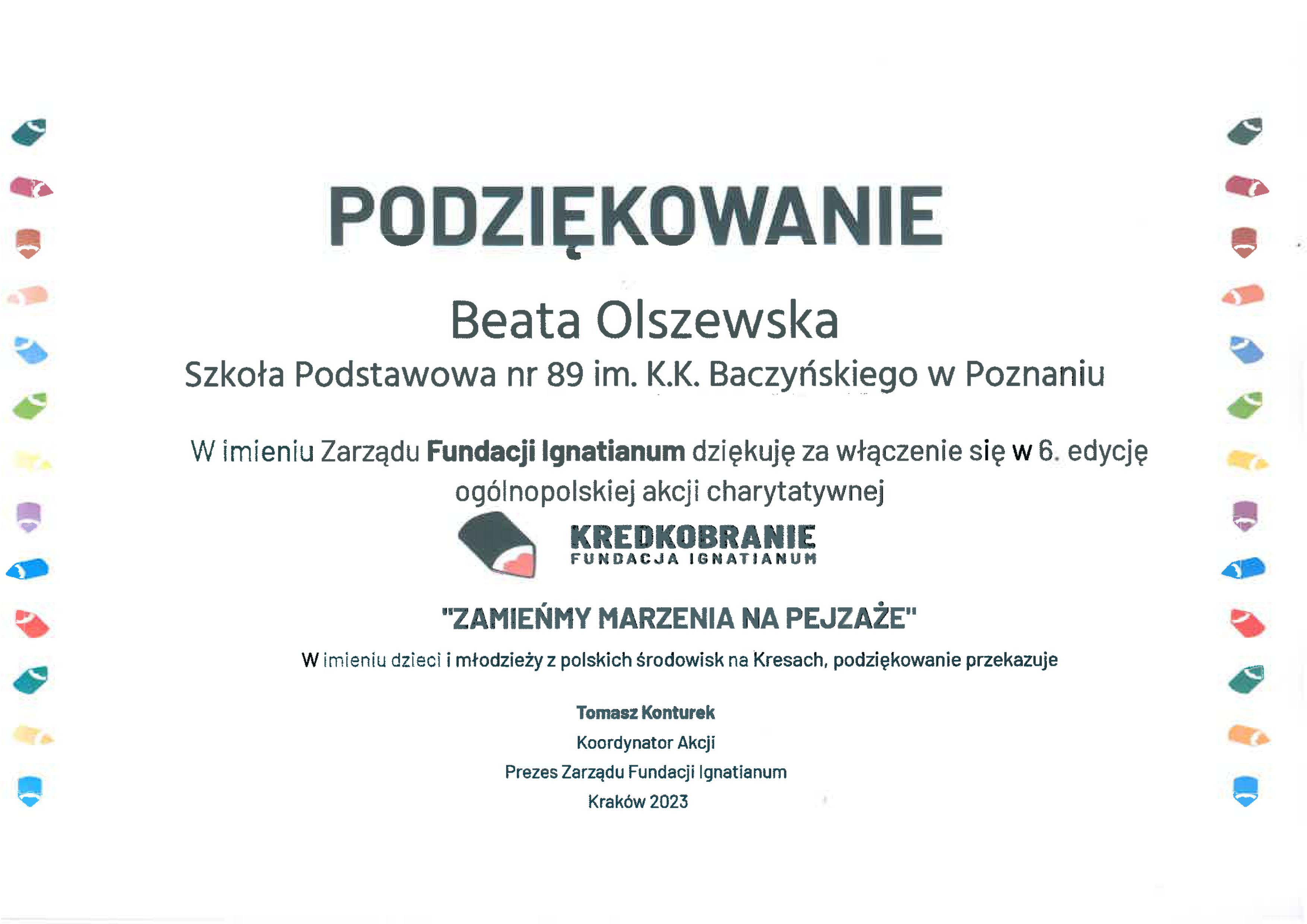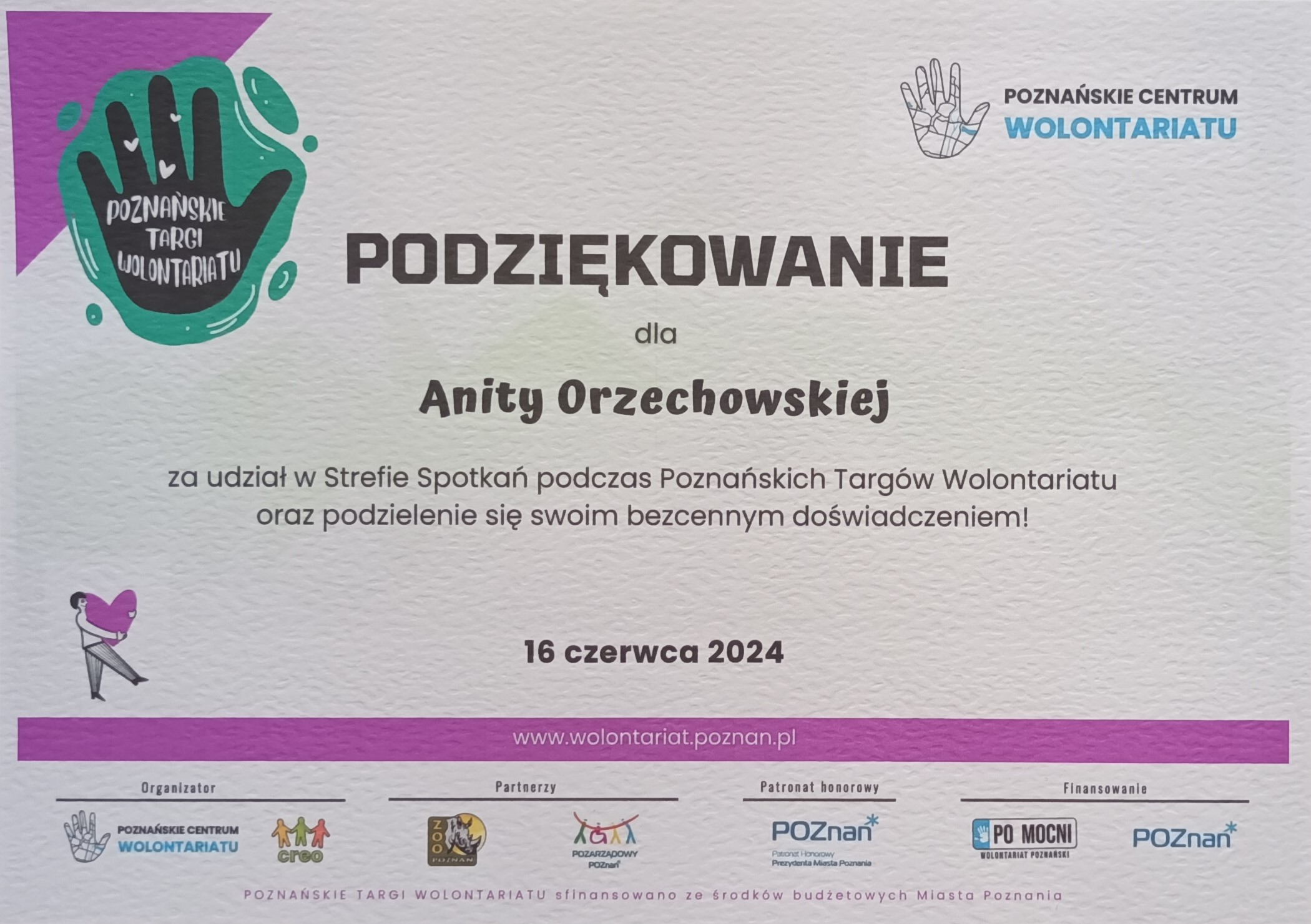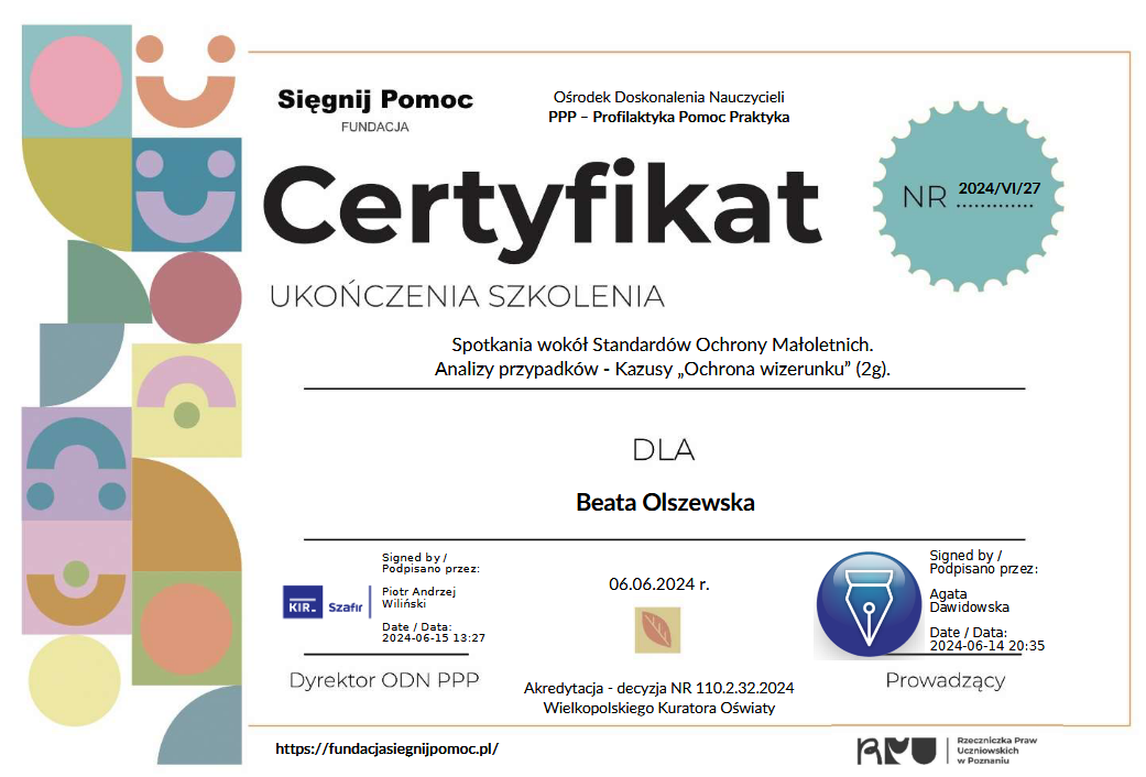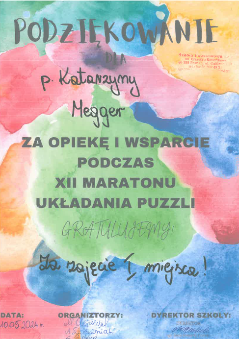 Podziękowania i certyfikaty