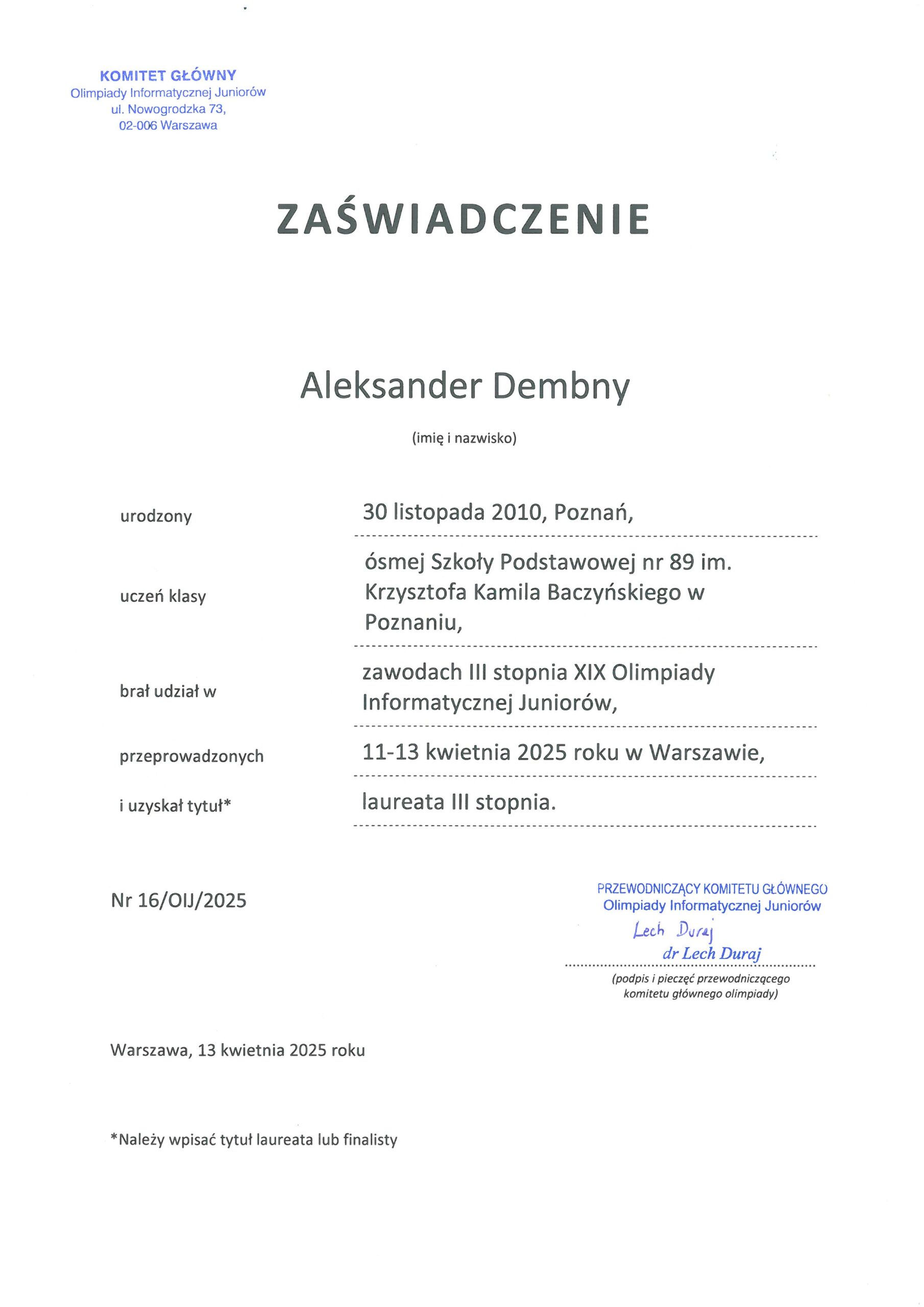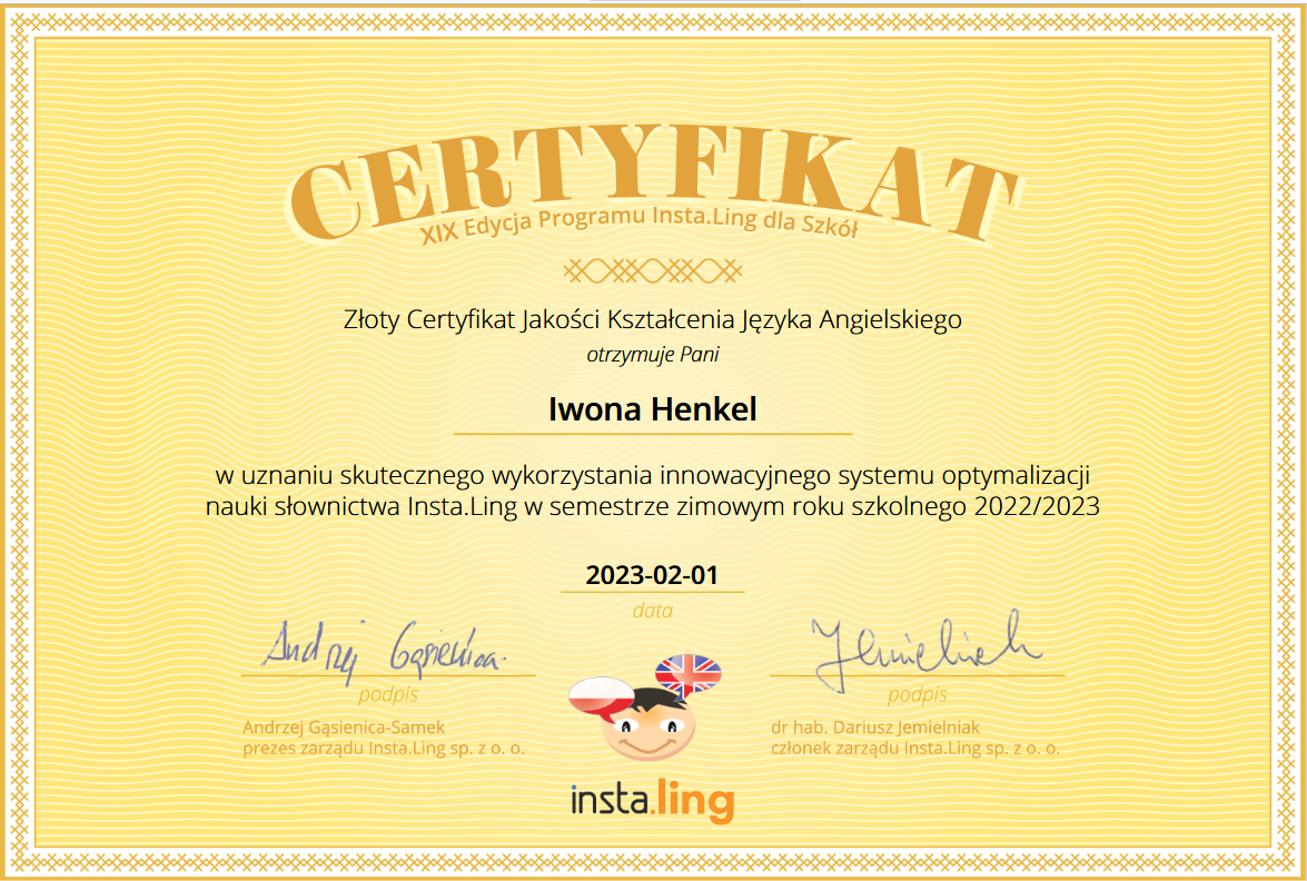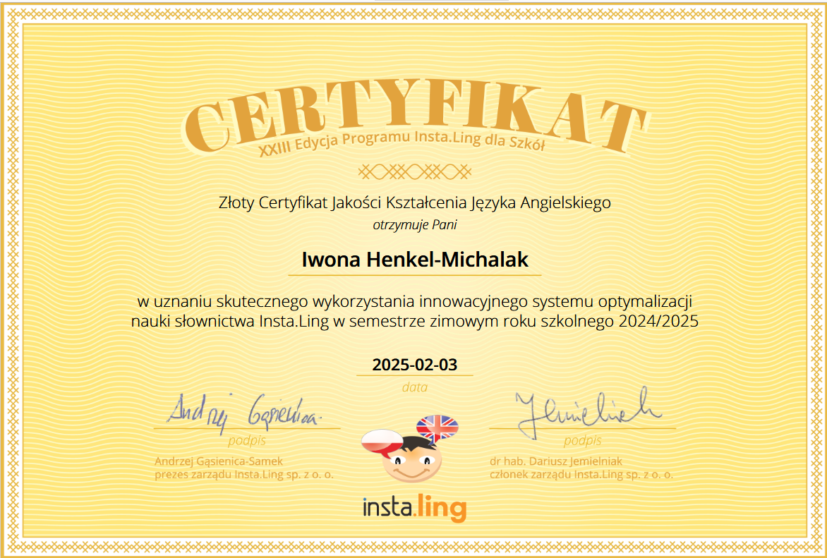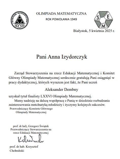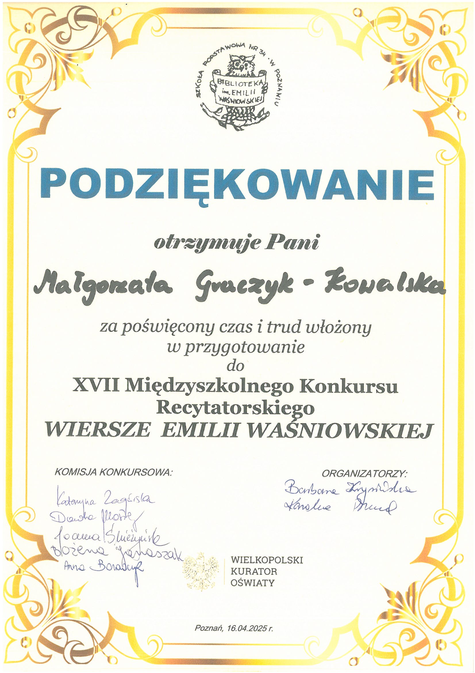 Podziękowania i certyfikaty
