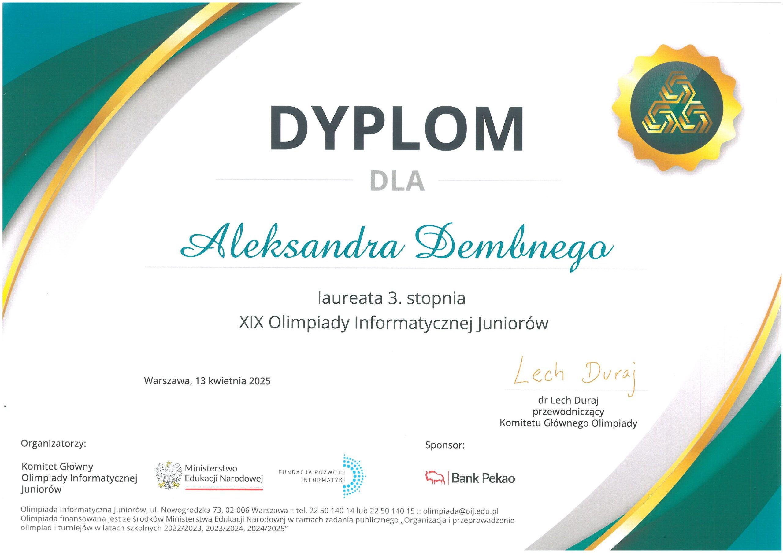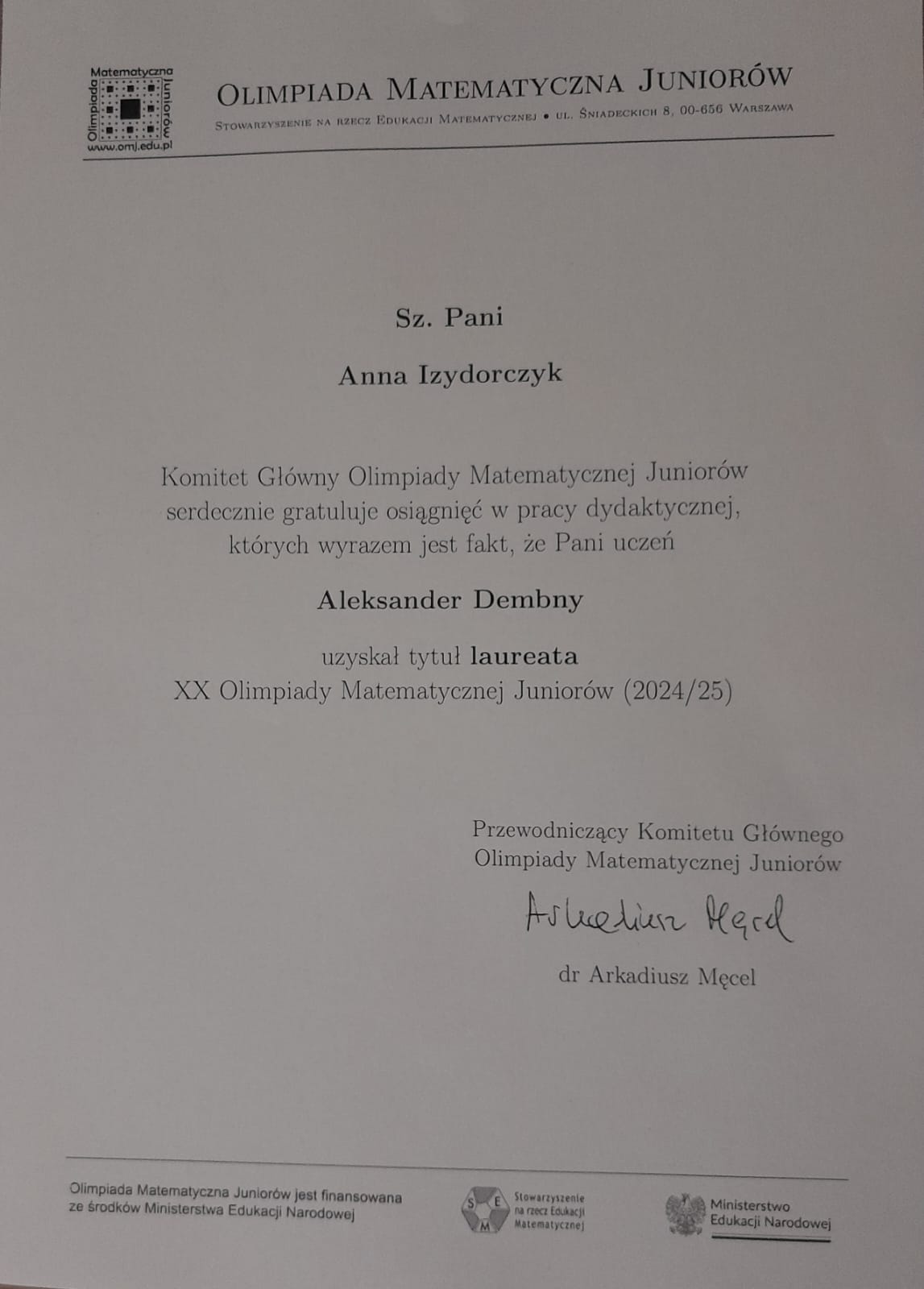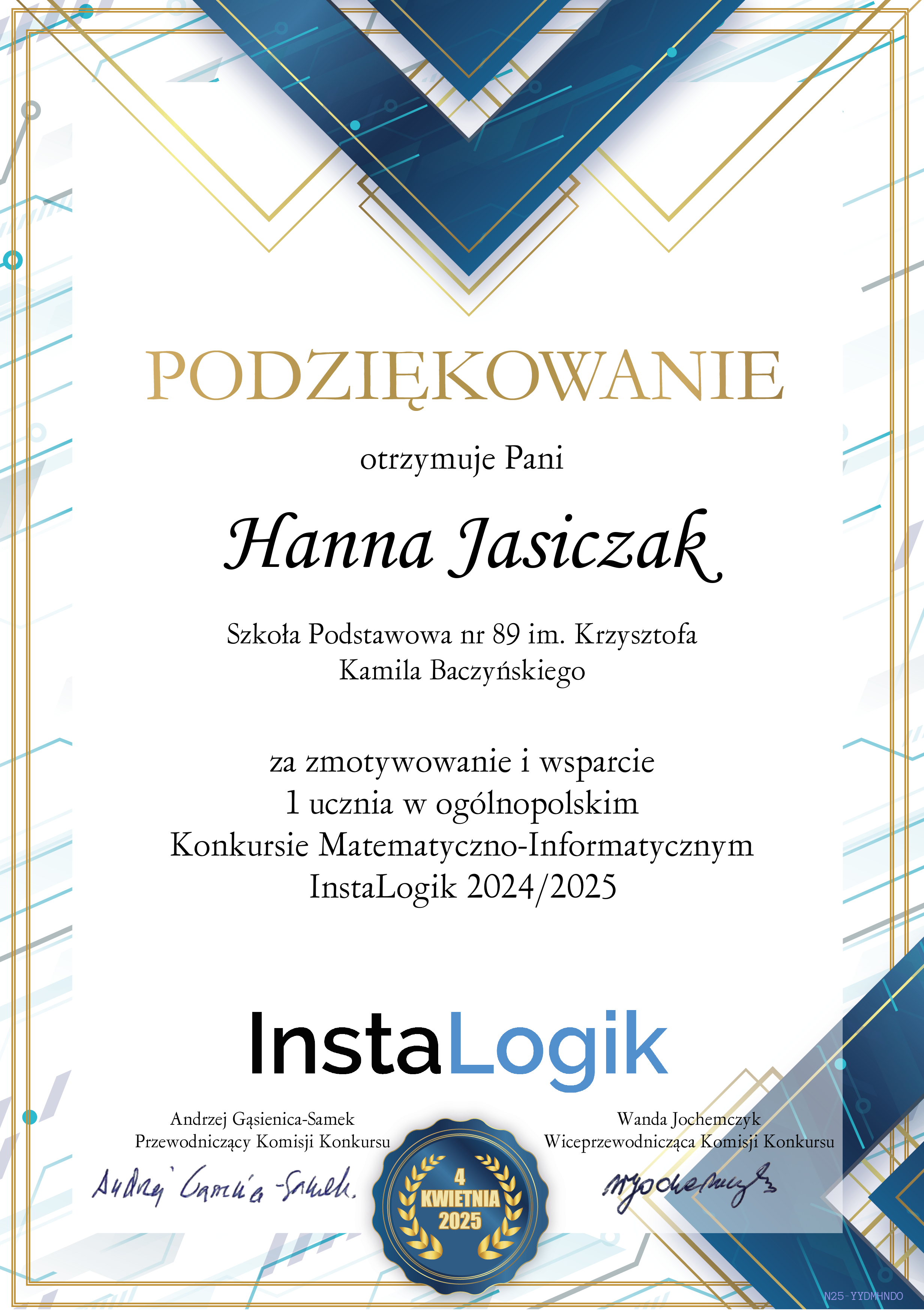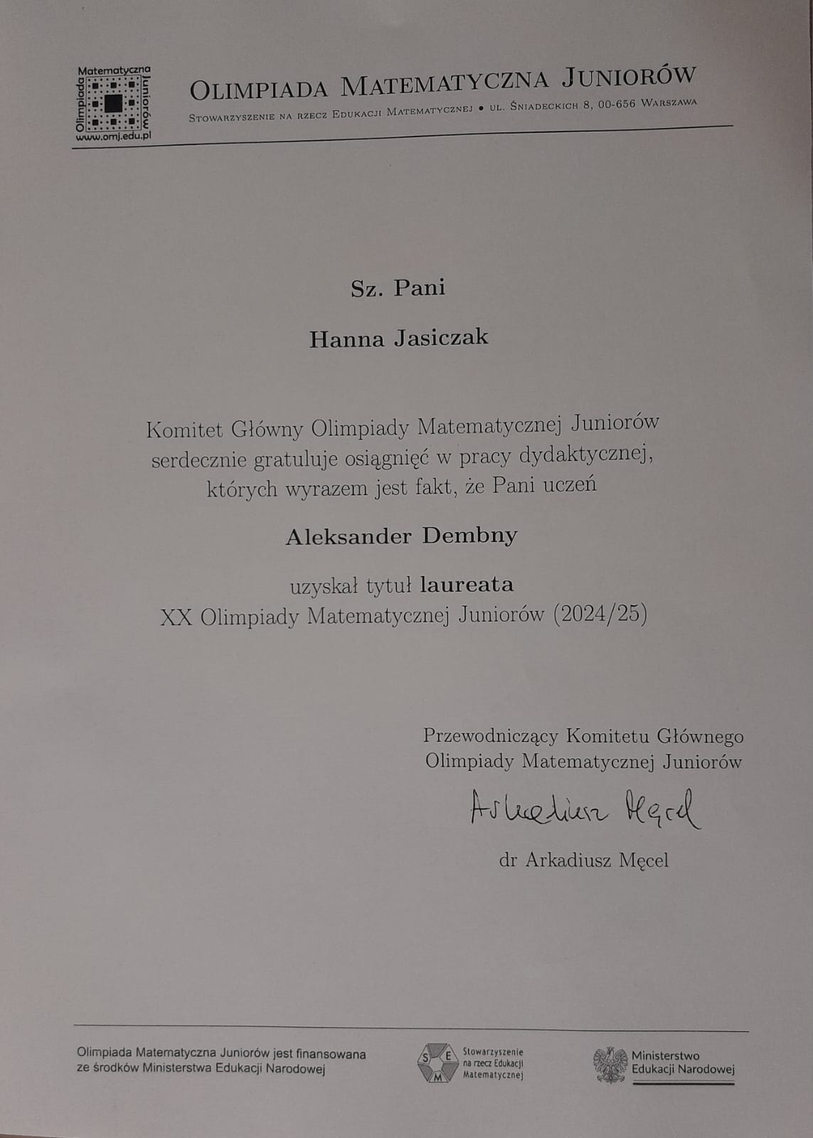 Podziękowania i certyfikaty