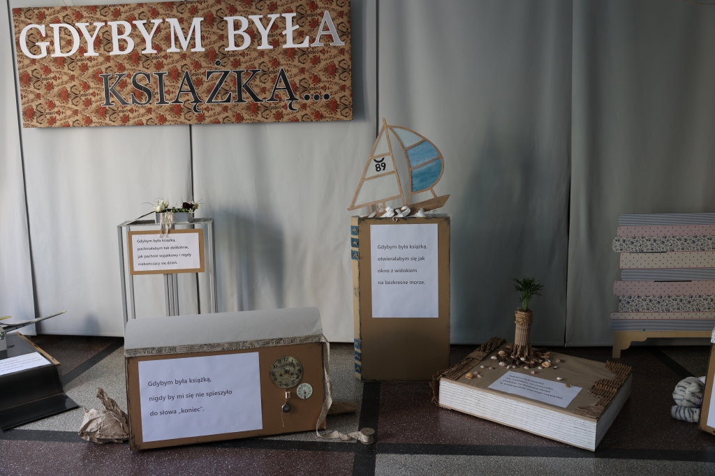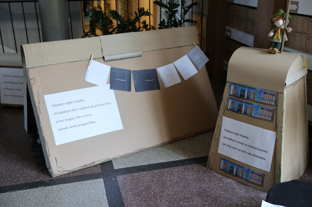 Z okazji Majowych Spotkań z Książką w holu patrona została otwarta wystawa biblioteczna “Gdybym była książką”. Odwiedzający wystawę mogą obejrzeć tematyczne aranżacje, w których główną bohaterką jest książka w wielu odsłonach.